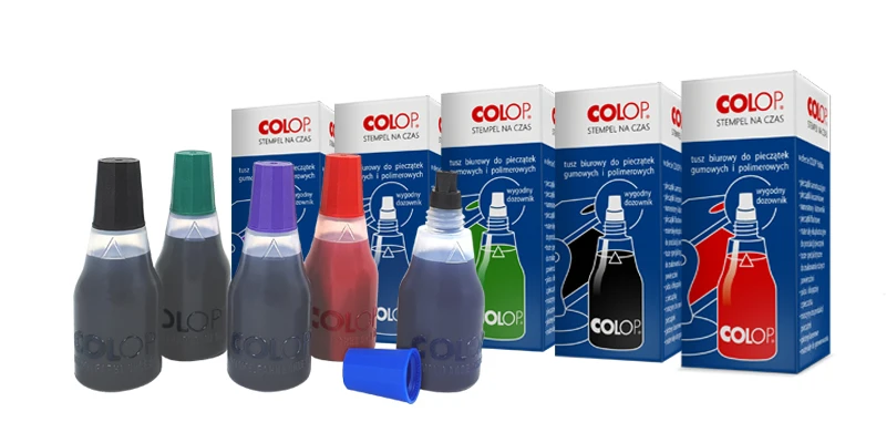 Tusz Colop do pieczątek gumowych i polimerowych, Kolor Czarny, Czerwony, Niebieski, Fioletowy, Zielony